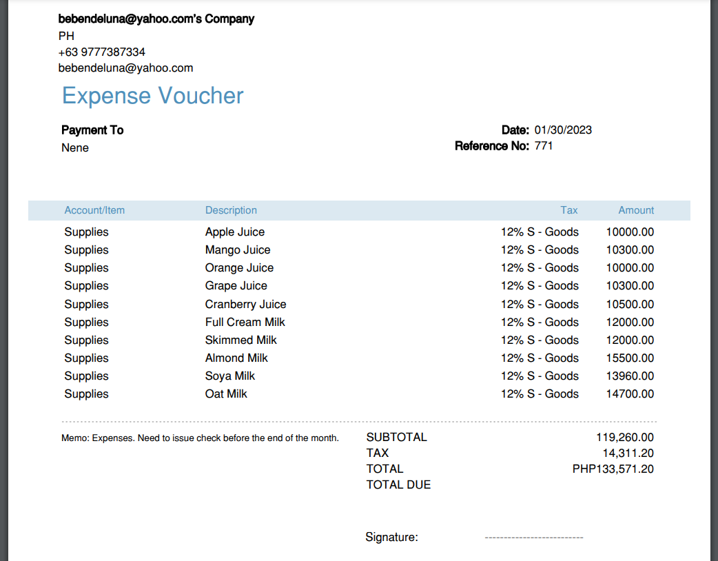 Bookkeeping Sample Expenses