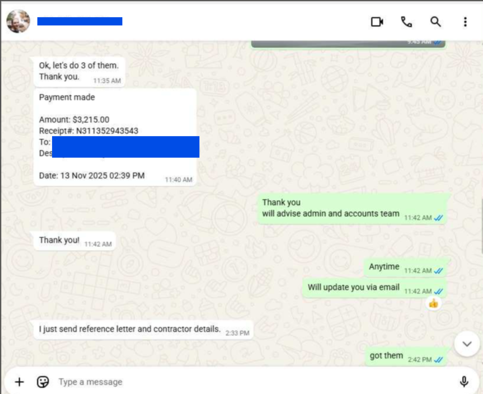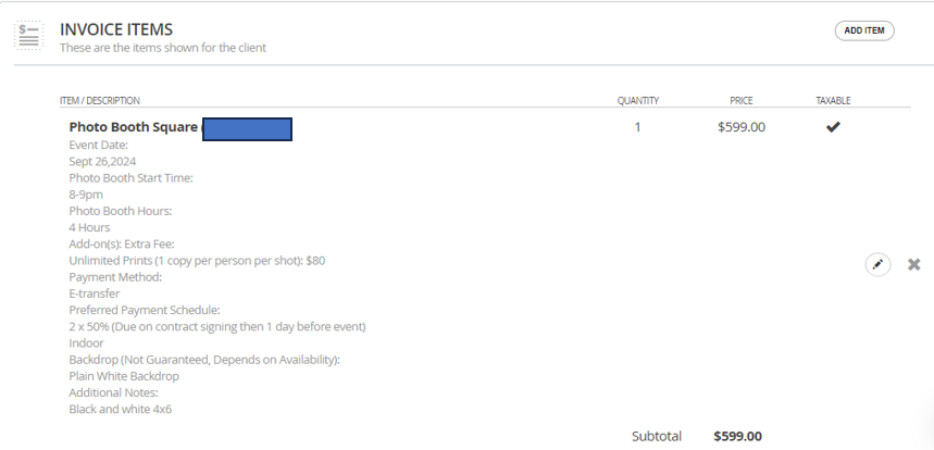 Sample invoice created through 17hats, demonstrating accurate service breakdown, pricing, and professional invoicing workflow.