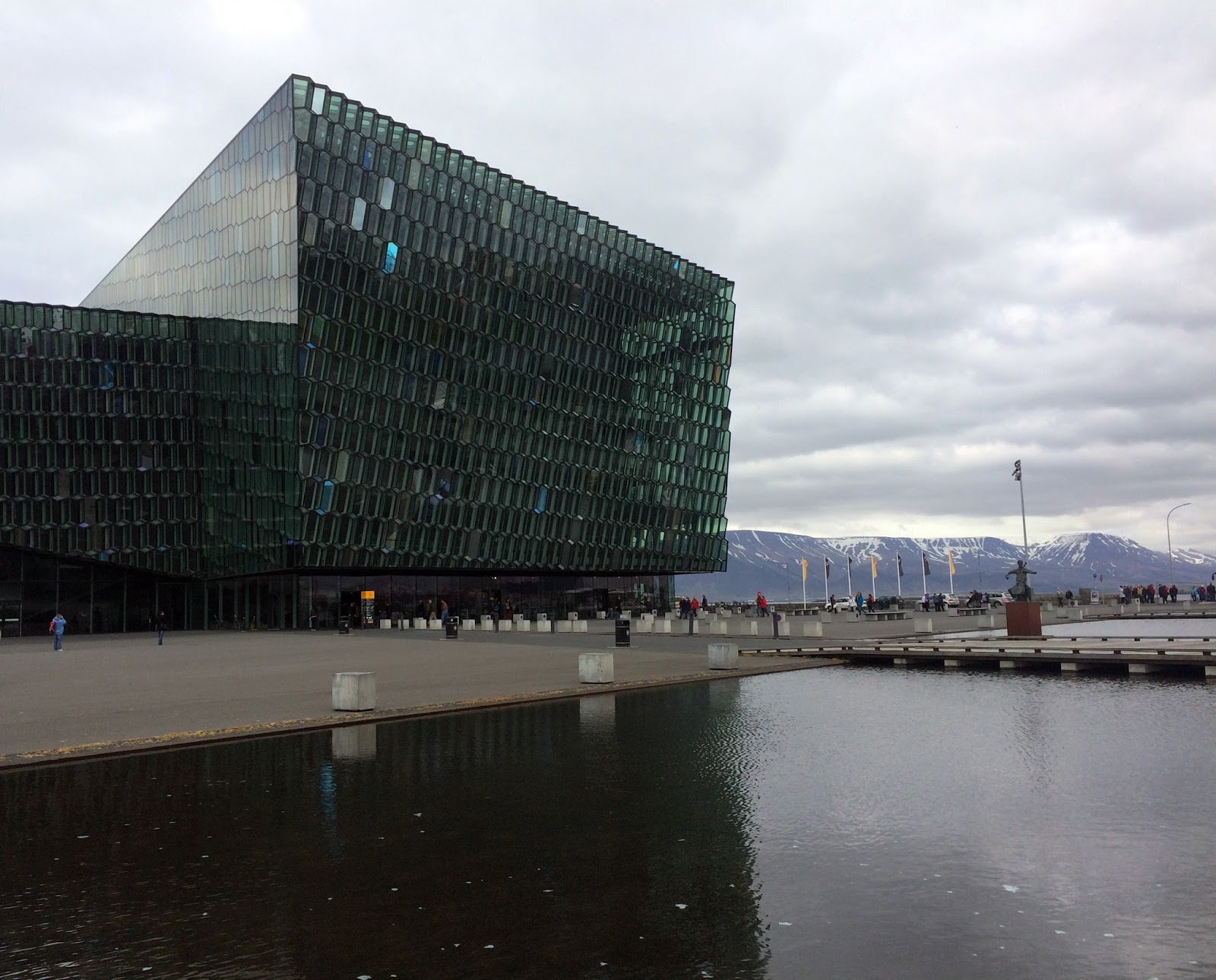 Outside Harpa with an almost freezing lake