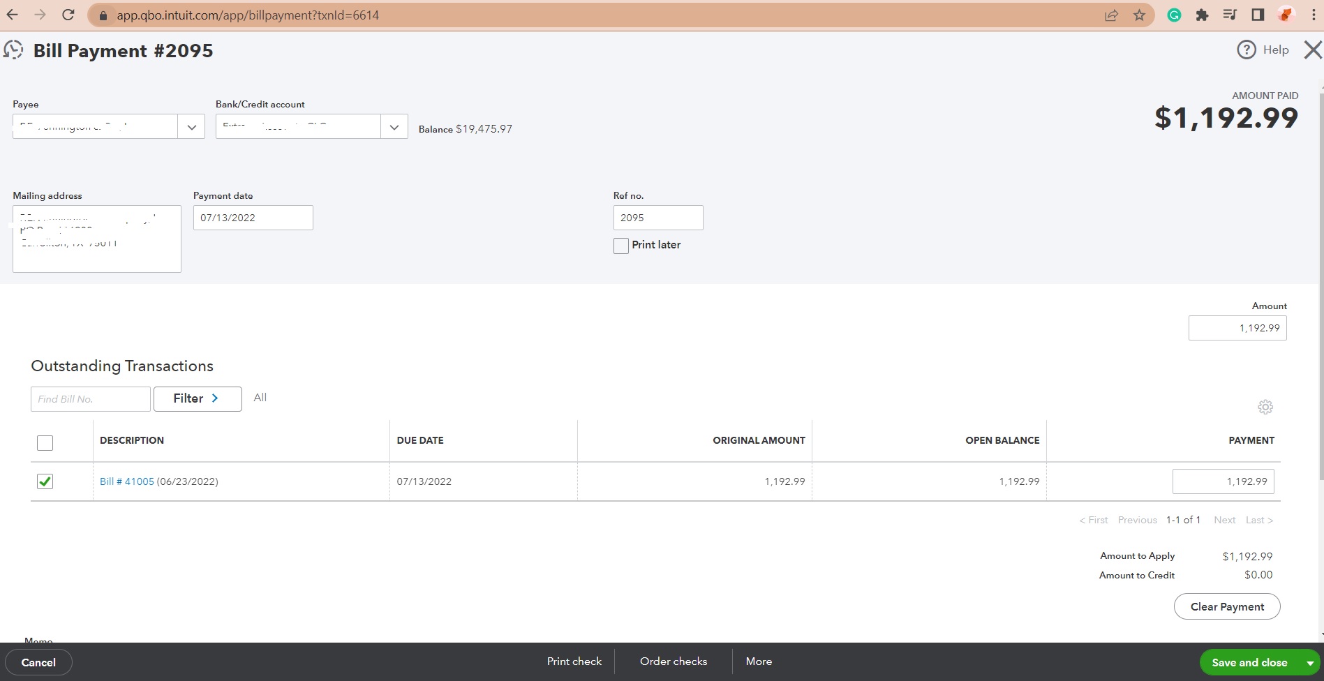 Qbooks Receive Payment Sample