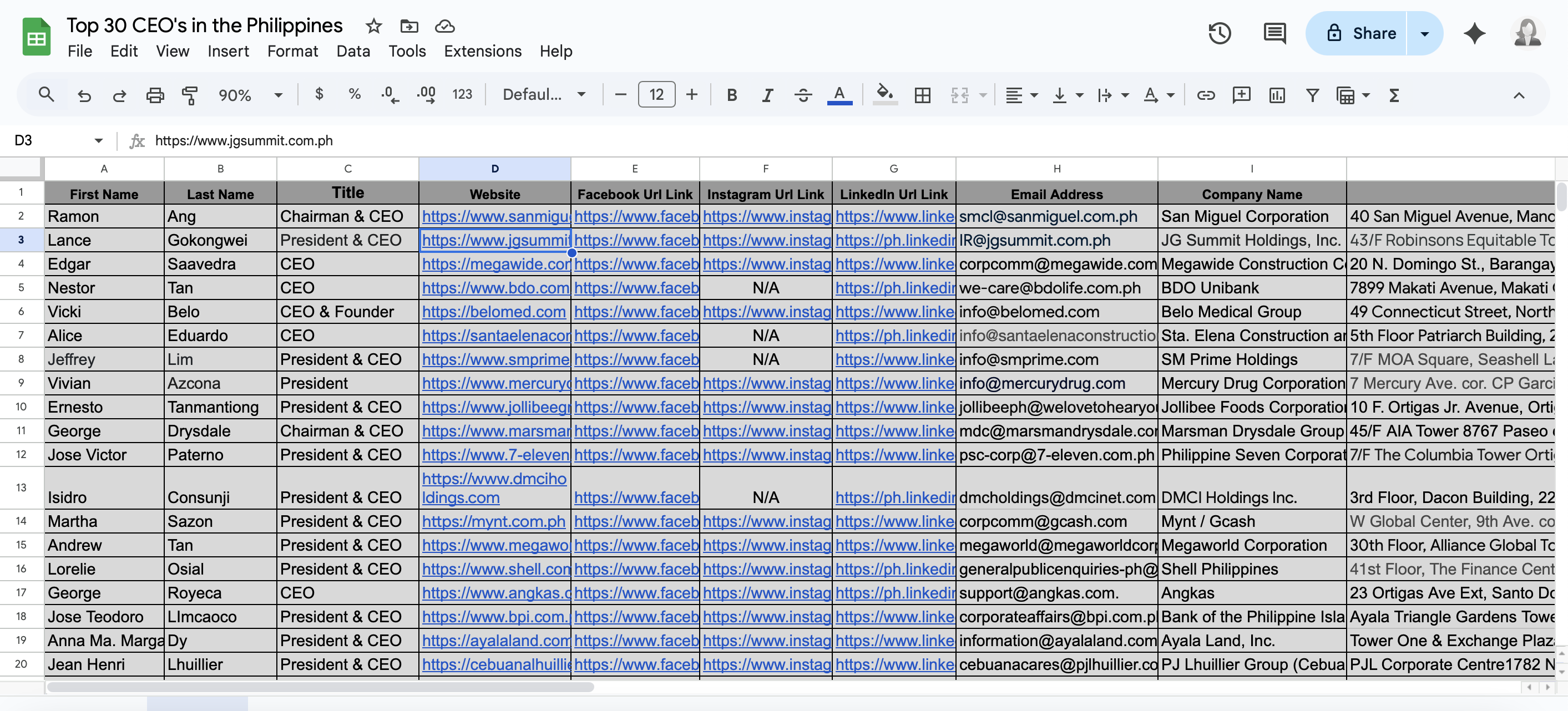 "Explore the top 30 CEOs in the Philippines with an easy-to-use Google Sheet, featuring key details, achievements, and company insights for business enthusiasts and researchers."