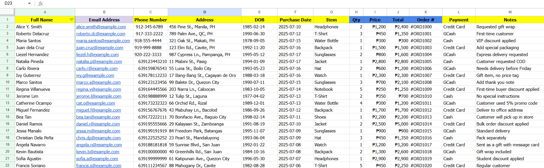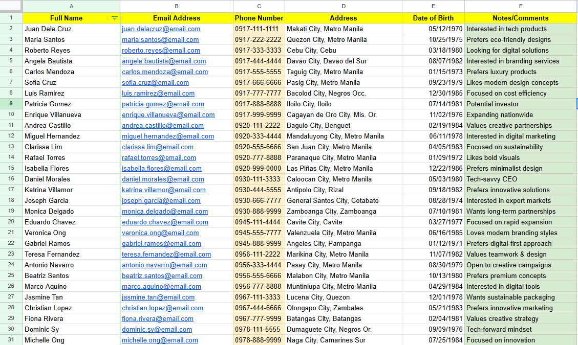 A customer database using Google Sheets. This database will help the company manage customer information effectively.