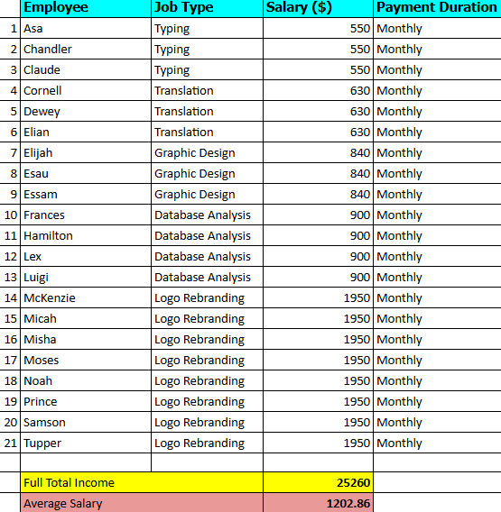 DATA ENTRY SAMPLE WORK