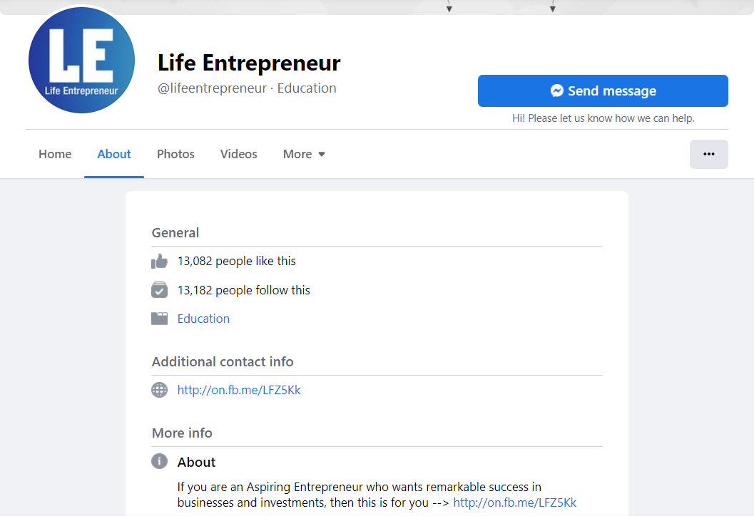 FB Page (Life Entrepreneur)